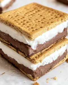 A creamy and refreshing twist on the classic s’more, these Frozen S’mores feature layers of chocolate pudding, marshmallow fluff, and whipped cream cheese sandwiched between crisp graham crackers—perfect for summer!